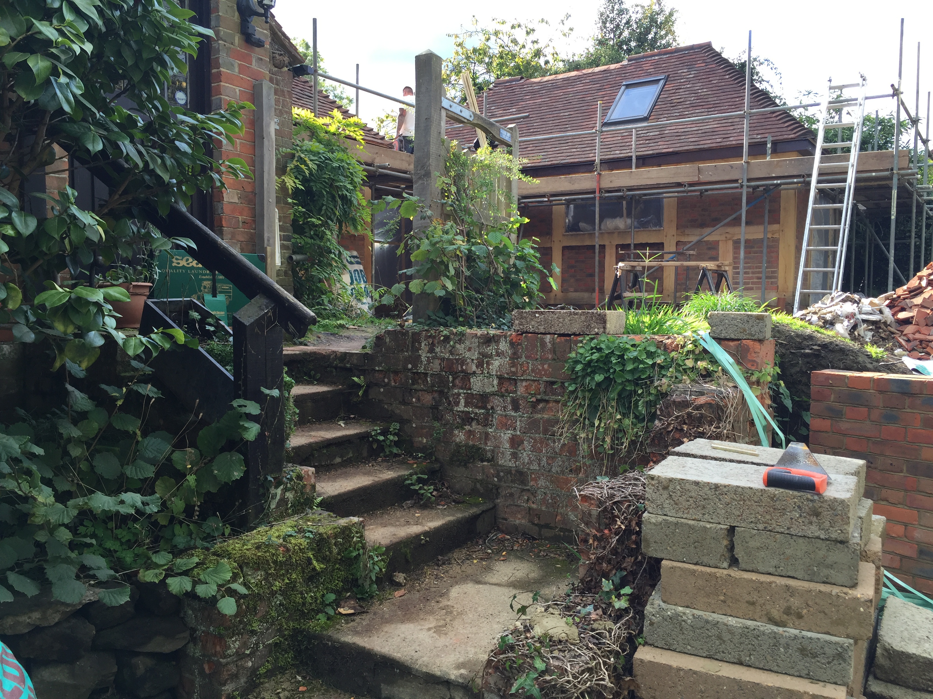 The situation is that my sister, (who owns the stunning 17th century cottage), has found herself in a bit of a fix. Along with writing cookery books and becoming a bit of a media superstar in the past couple of years, (which you can read all about at https://trufflehound.wordpress.com/) she has been up to her eyes with the planning and construction of an extension for her newly purchased home. She’s adding a kitchen, and a bedroom and bathroom linked by a glass walkway to the original house. The builders have been hard at work since June.