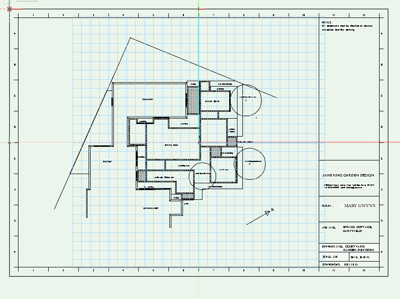 The architect and builders are doing a great job of turning the building into something amazing. Now it’s time to do the same for the garden. But time is what we have very little of, so I take the site survey away with me, and I get going, and over the weekend I come up with a solution to the most pressing requirement, which is a plan for the courtyard garden in front of the new extension.